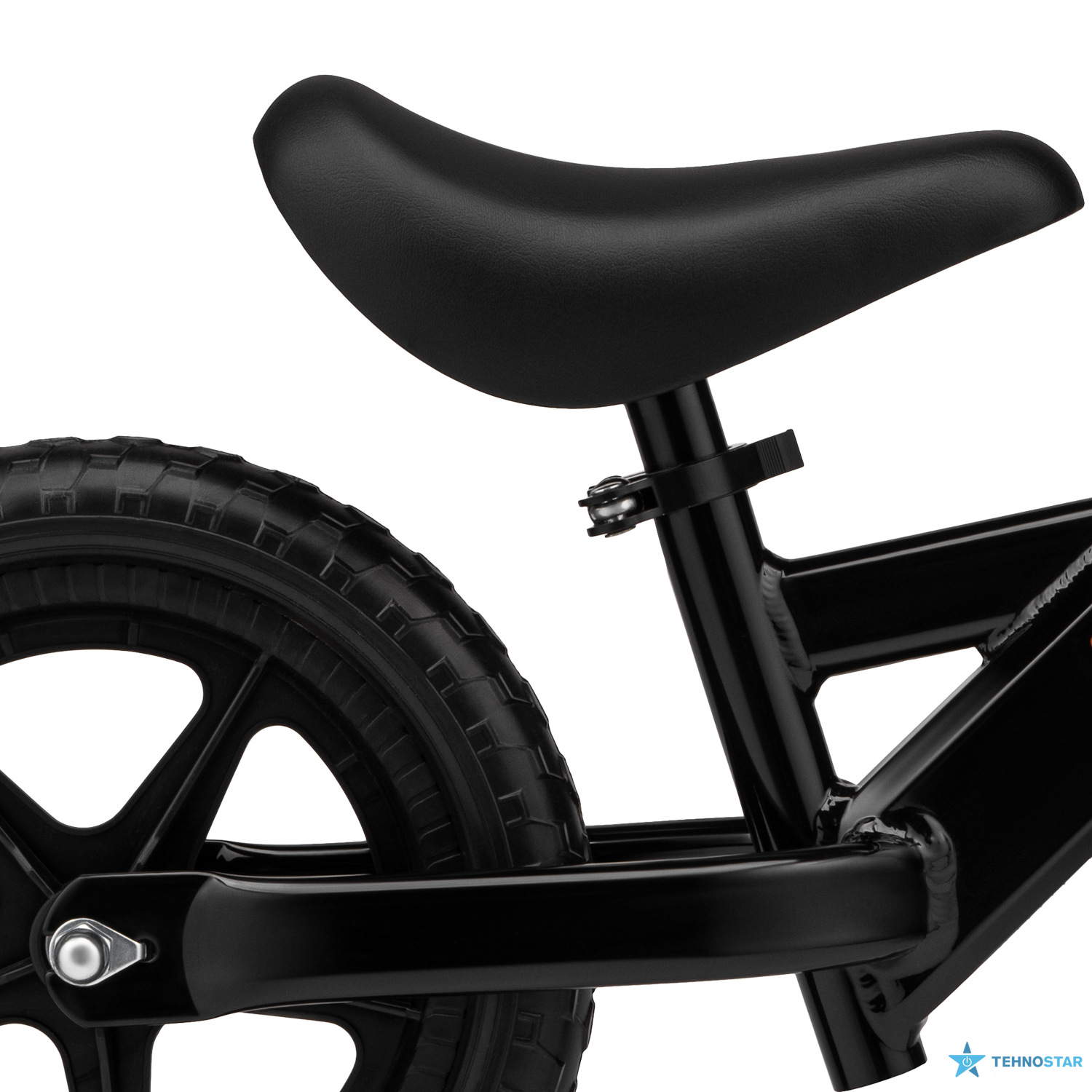 Колеса діаметром 12" виготовлені з гуми, що забезпечує плавний рух і хороше зчеплення з різними поверхнями. Завдяки регульованому сидінню біговел легко підлаштовується під зріст дитини, забезпечуючи комфортну посадку. Відсутність педалей дозволяє малюку зосередитися на утриманні рівноваги та поступово формувати впевненість у русі.