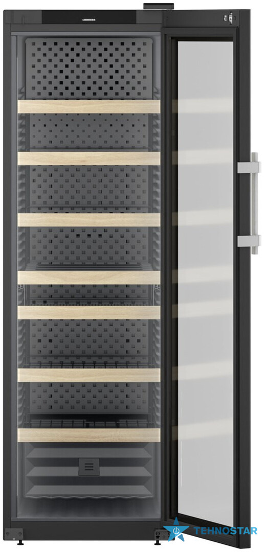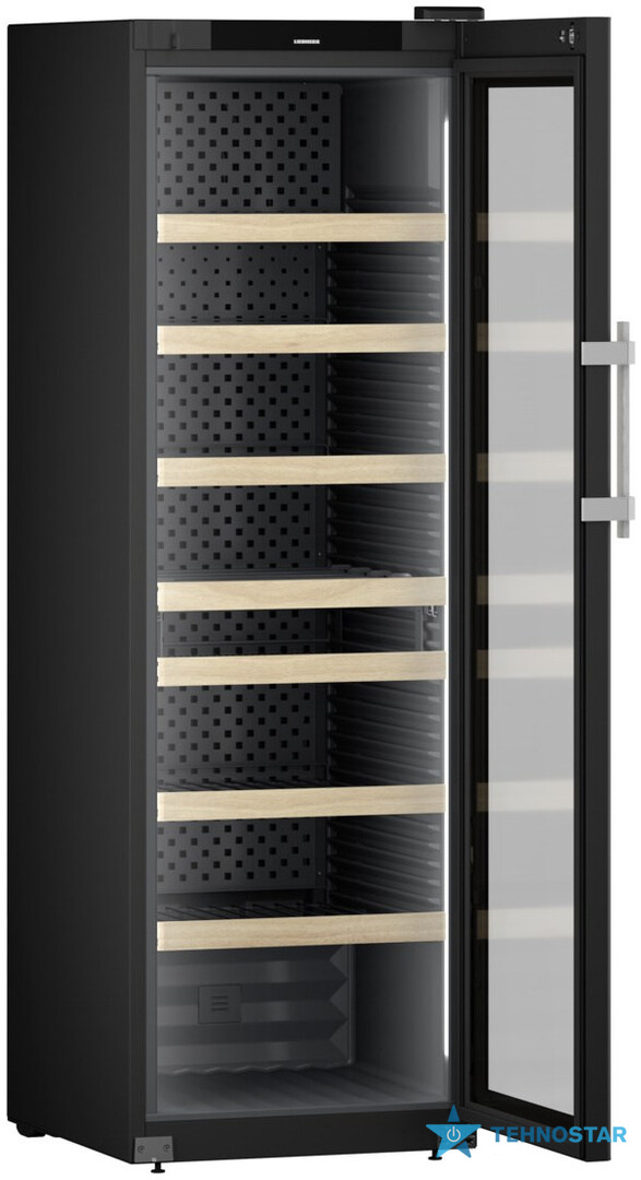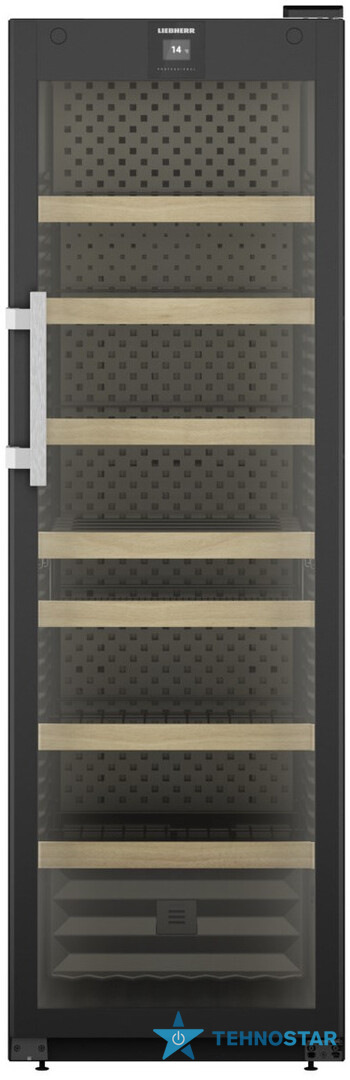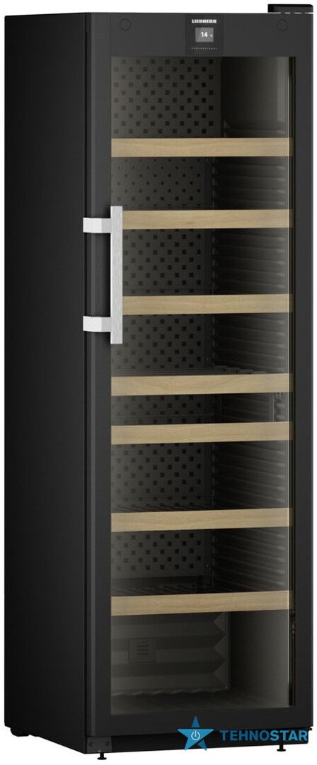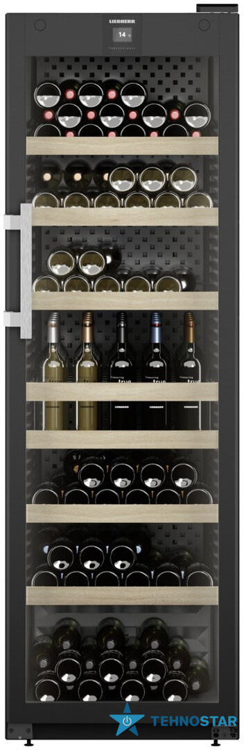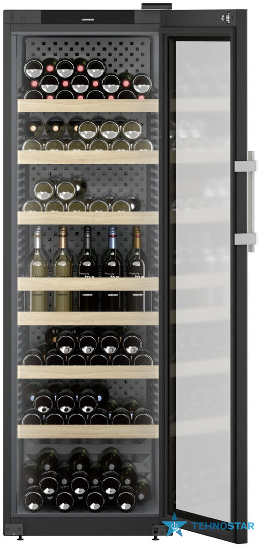 Liebherr WFBli 5241 — це професійна винна шафа з елегантним сучасним дизайном: скляні дверцята з UV-захистом, внутрішнє демонстраційне LED-освітлення LightColumn з обох боків та вишукана графітово-сіра металева задня панель. Поєднання металу, дерева та скла створює преміальний вигляд, гідний ресторанного простору або приватної колекції високого рівня.