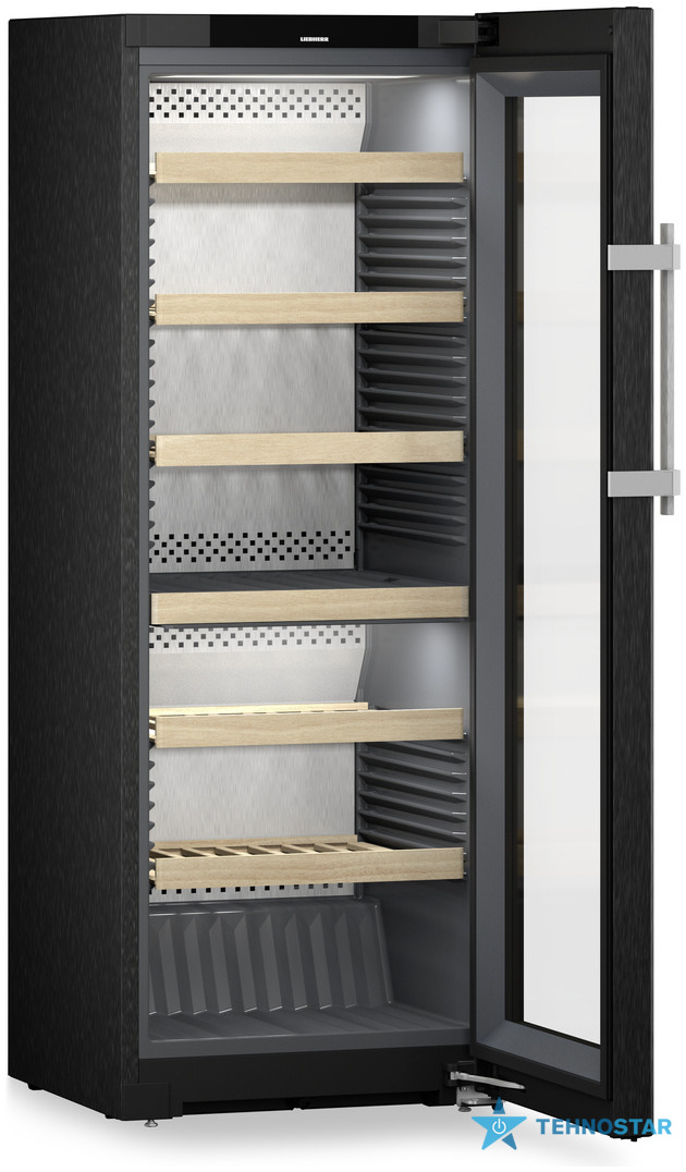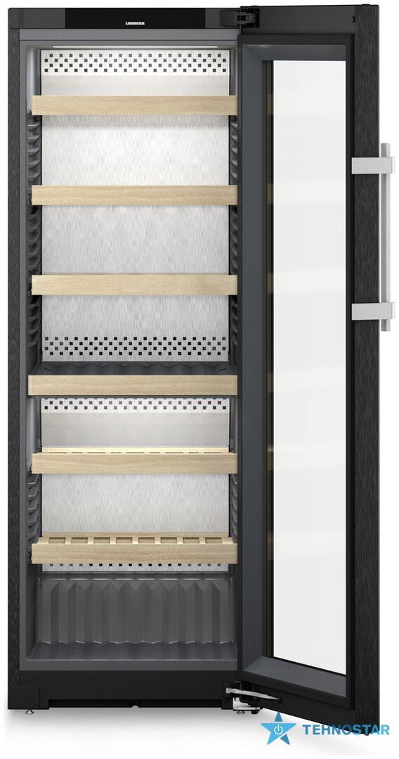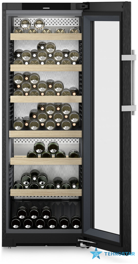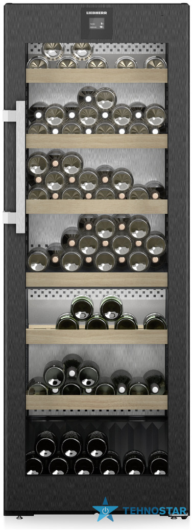 Внутрішній простір поєднує функціональність і дизайн: регульовані дерев’яні полиці з бука, презентаційна полиця для відкритих пляшок, зберігання шийками одна до одної та задня панель з нержавіючої сталі SmartSteel. Такі рішення забезпечують максимальну місткість, рівномірну циркуляцію повітря та ефектний вигляд.