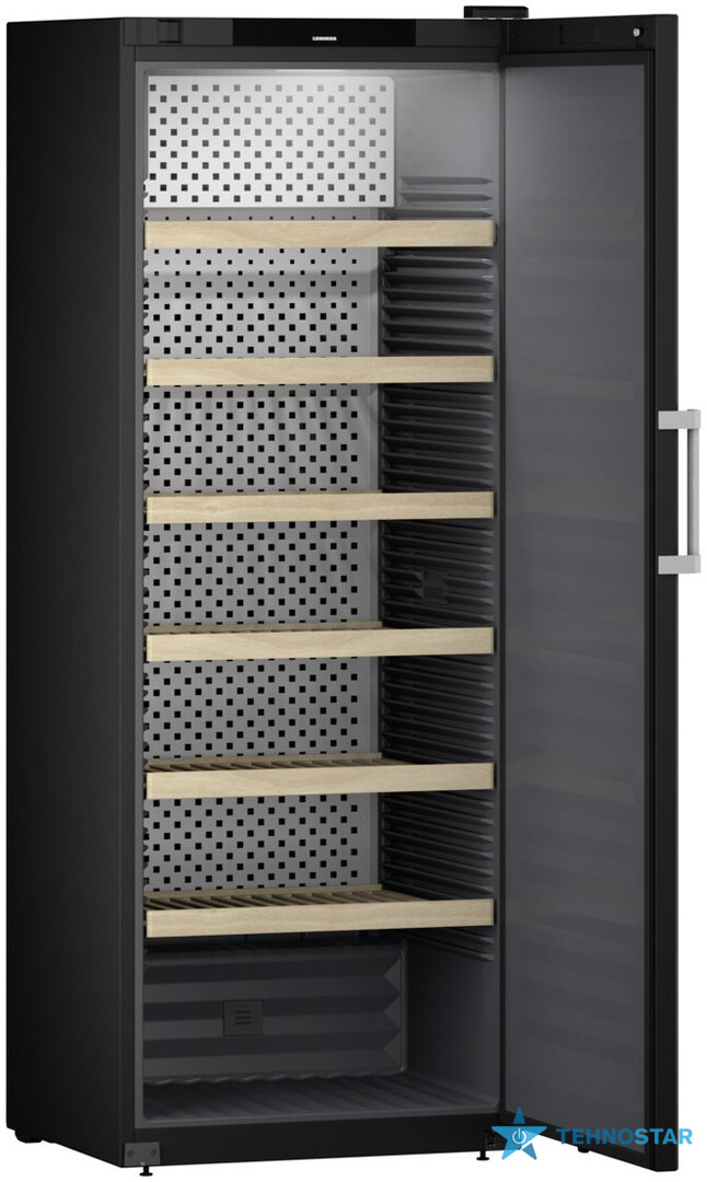 Внутрішній простір поєднує естетику й функціональність: дерев’яні полиці з масиву бука з регулюванням висоти, можливість зберігання пляшок шийками одна до одної та задня панель із нержавіючої сталі SmartSteel. Таке рішення забезпечує максимальну місткість, рівномірну циркуляцію повітря та ефектний вигляд навіть порожньої шафи.
