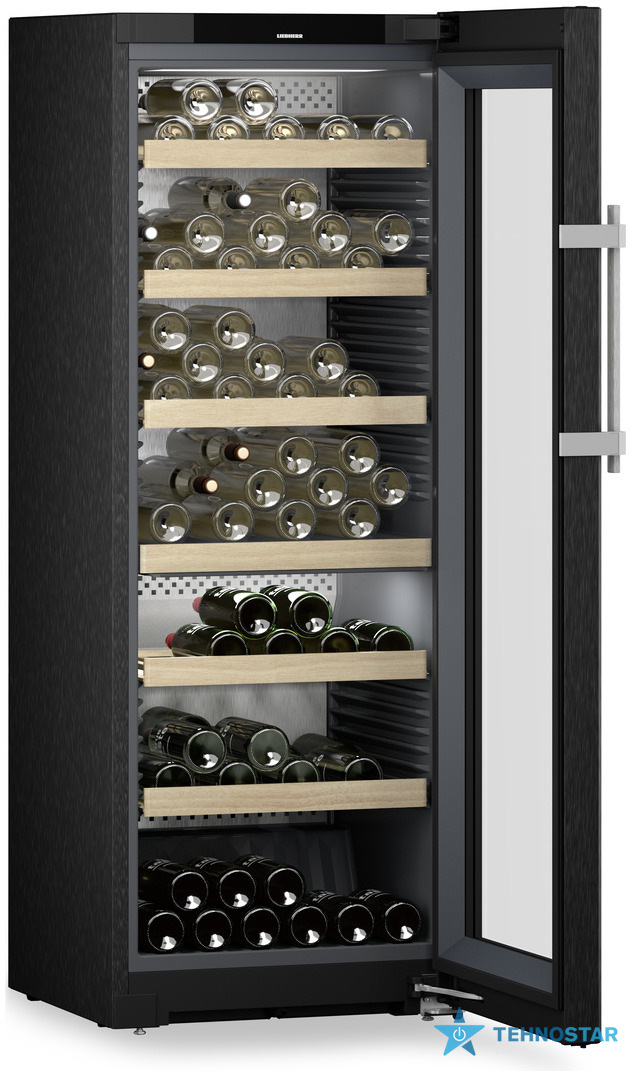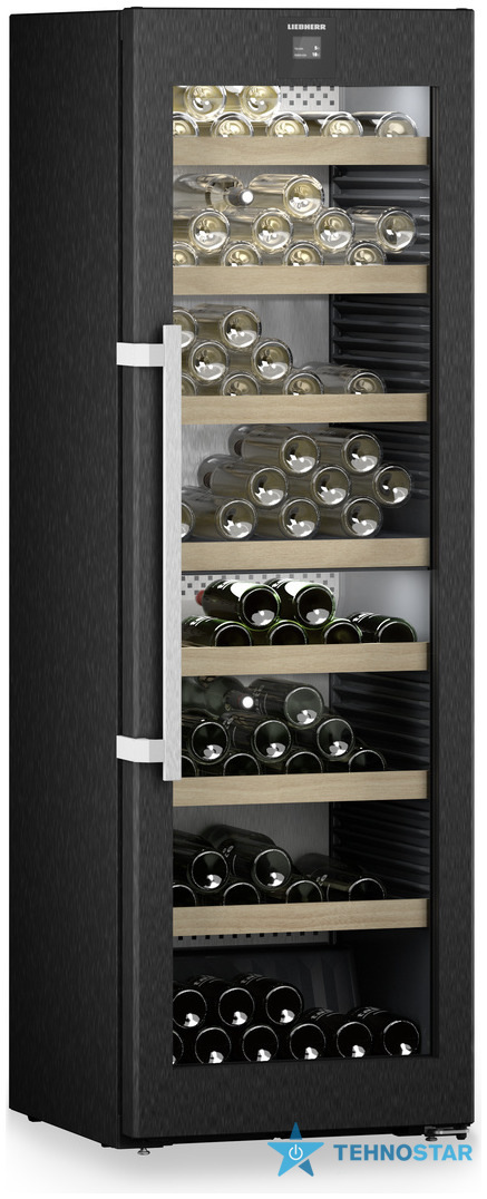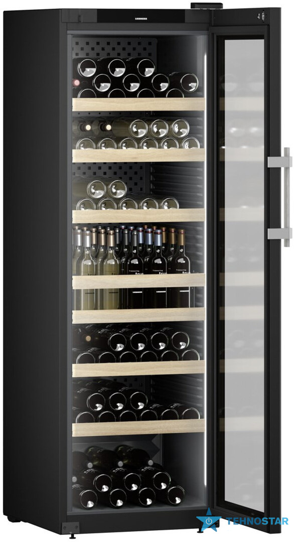 Спосіб встановлення: Окремостоячі, Габарити, см: висота: 148.4, ширина: 59.7, глибина: 76.3, Технічні дані: кількість температурних зон: 1, кількість пляшок (0,75л): 166, клас енергоспоживання: F, управління температурою: електронне, об`єм (л): 328, мін. температура: : 5, макс. температура: 20, матеріал полиць: : дерев'яні, Колір: чорний, Країна виробник: : Австрія, Технології (особливості): захист від дітей: так, компресорне охолодження: так, регульовані ніжки: так, внутрішнє освітлення: так