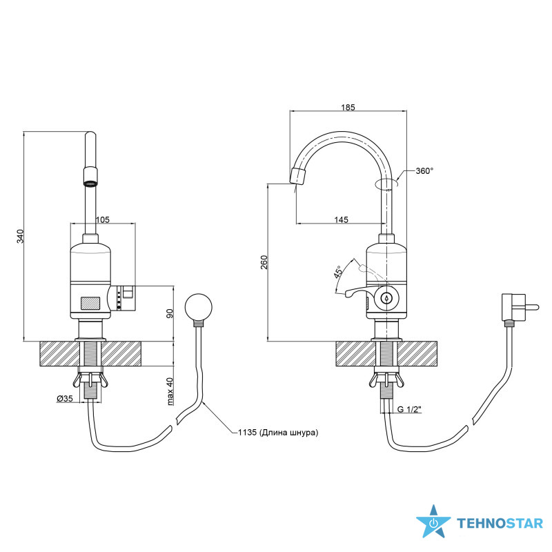 Кран для кухні проточний Lidz (WCR) 95 00 056 виготовлений з нержавіючої сталі. Призначений для швидкого нагріву проточної води для побутових цілей. Підмикається до магістралі холодного водопостачання за допомогою гнучкого шланга діаметром 1/2 "з тиском від 0.04 до 0.5 МПа і побутової електричної мережі 220 В, 50 Гц.