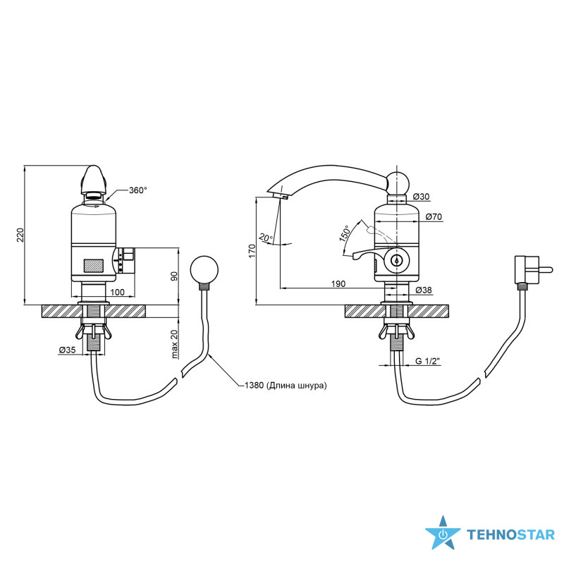 Кран для кухні проточний Lidz (WHI) 95 00 057 виготовлений з нержавіючої сталі. Призначений для швидкого нагріву проточної води для побутових цілей. Підмикається до магістралі холодного водопостачання за допомогою гнучкого шланга діаметром 1/2 "з тиском від 0.04 до 0.5 МПа і побутової електричної мережі 220 В, 50 Гц.