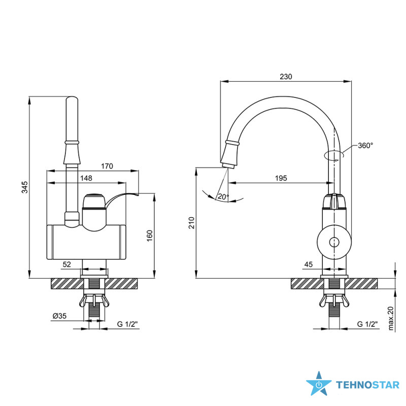 Кран для кухні проточний Lidz (WCR) 95 00 058 виготовлений з нержавіючої сталі. Призначений для швидкого нагріву проточної води з побутовою метою. Підмикається до магістралі холодного водопостачання за допомогою гнучкого шланга діаметром 1/2 "з тиском від 0.04 до 0.5 МПа і побутової електричної мережі 220 В, 50 Гц.