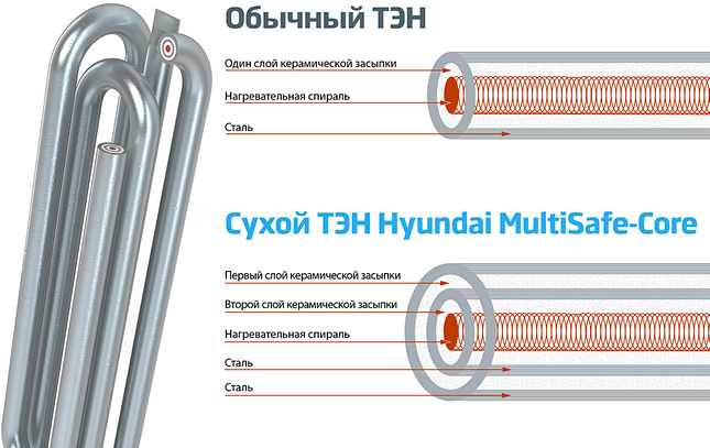 Бойлер із сухим теном, внаслідок конструкції нагрівального елемента, має незаперечний ряд переваг:
