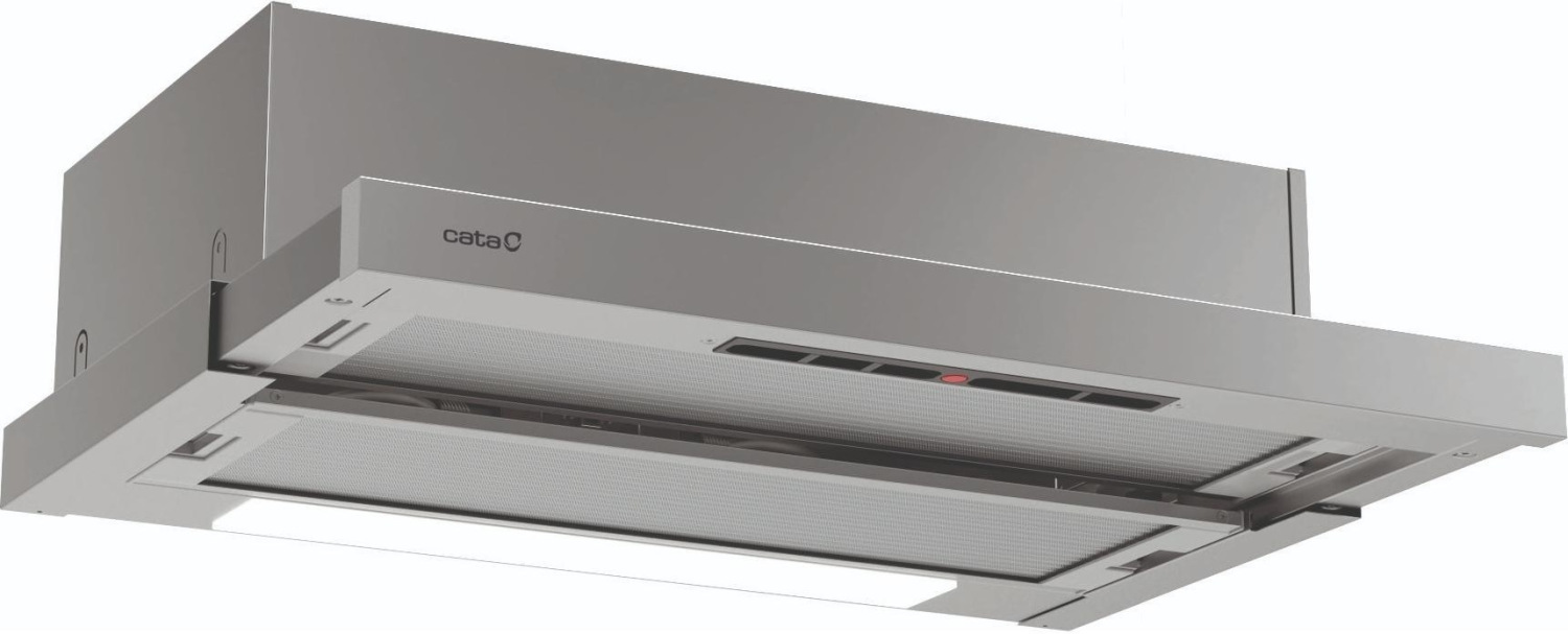 Cata TFK 6005 (02034604) — компактна телескопічна витяжка 60 см з нержавіючої сталі, продуктивністю 360 м³/год та класом енергоефективності B. 2 швидкості, просте механічне керування, яскраве LED-освітлення та миючі алюмінієві фільтри. Тиха на першій швидкості, легко ховається в шафу — ідеальний вибір для невеликих та середніх кухонь з інтенсивним готуванням.