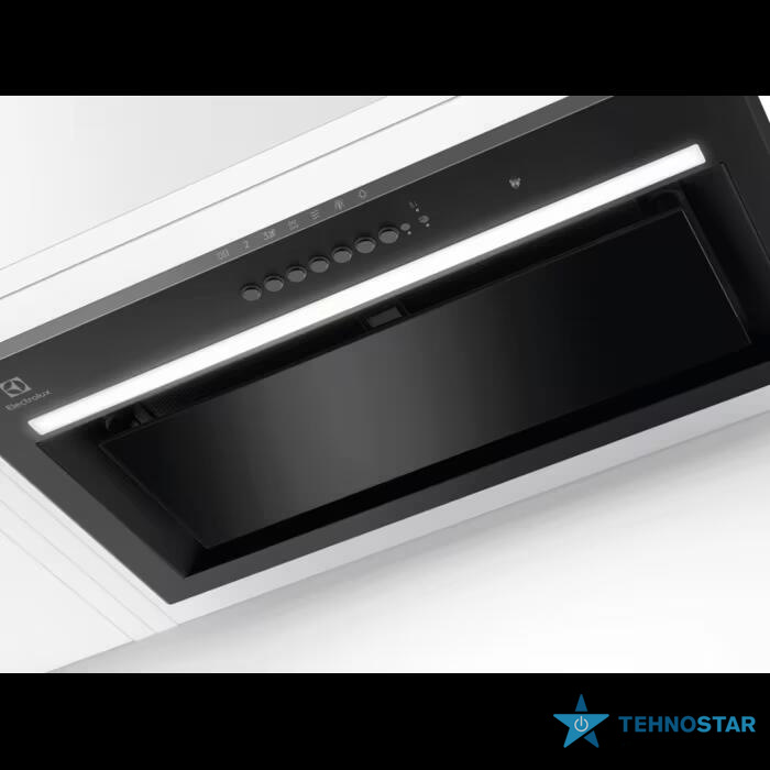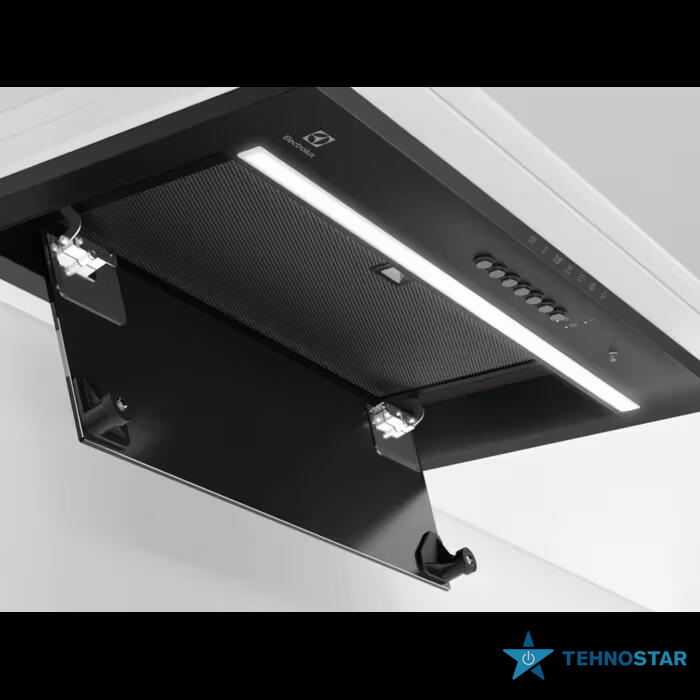 Electrolux LFG825K — вбудована чорна кухонна витяжка з лаконічним дизайном і електронним керуванням, призначена для повного вбудовування в кухонну шафу та зручного щоденного використання.