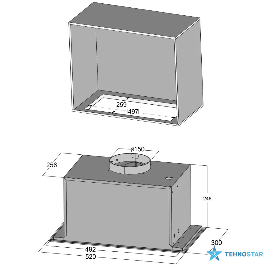 Діаметр повітроводу: Рекомендується 150 мм. Мінімум 120 мм.
