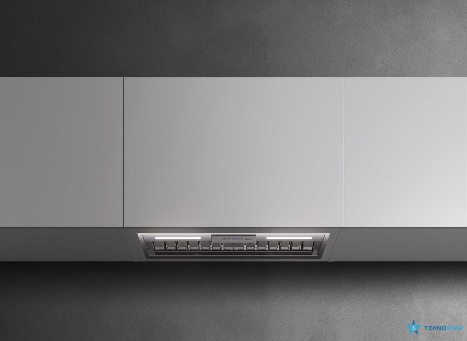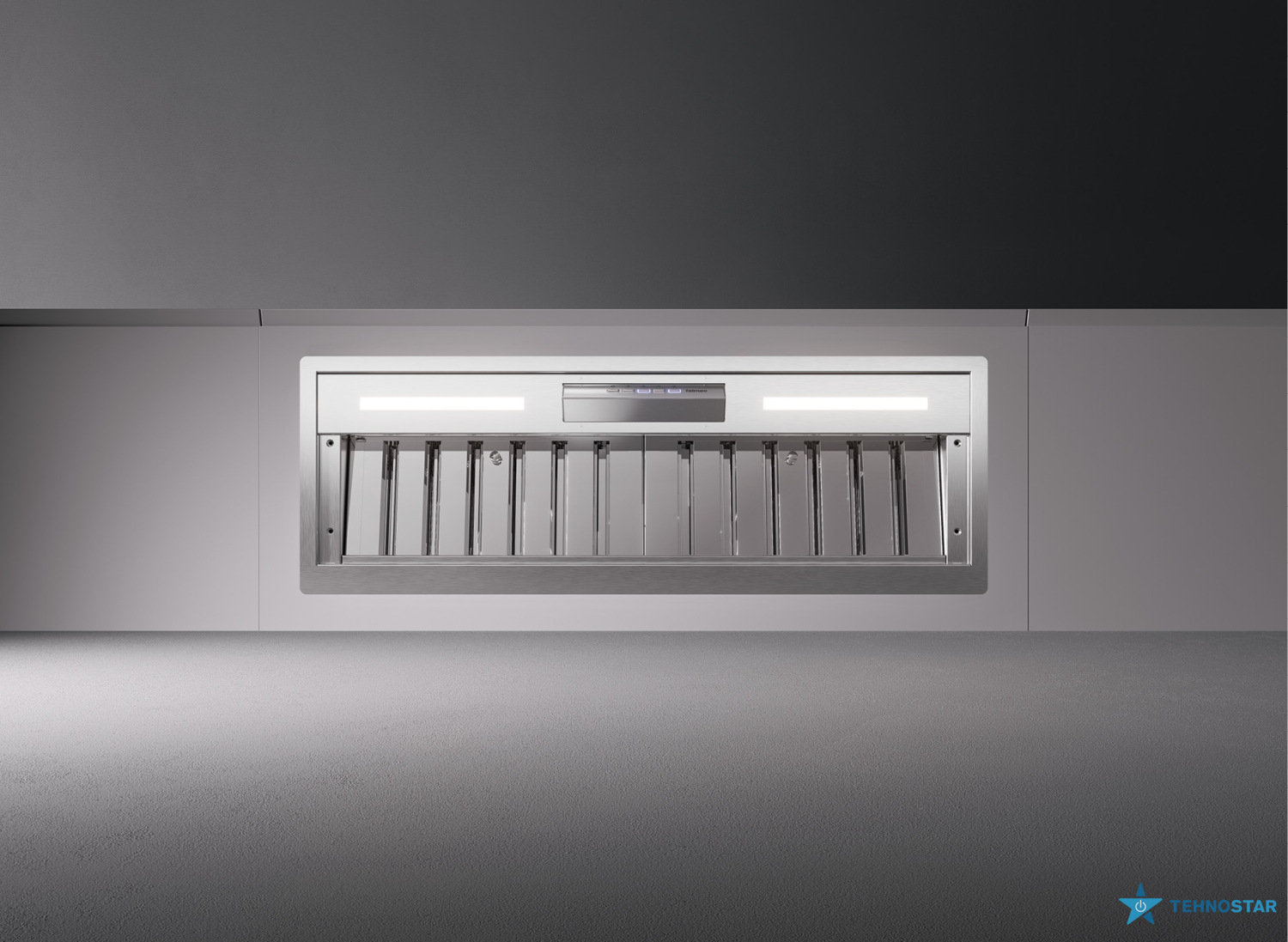 Витяжка Falmec GRUPPO INCASSO PRO PLUS 80 оснащена спеціальним фільтром Baffle та колектором для жиру. Витяжка оснащена двигуном потужністю 950 м3/год та «Динамічним світлодіодним освітленням» з регульованою інтенсивністю. Діалогова система забезпечує управління витяжкою з варильною поверхнею Falmec.
