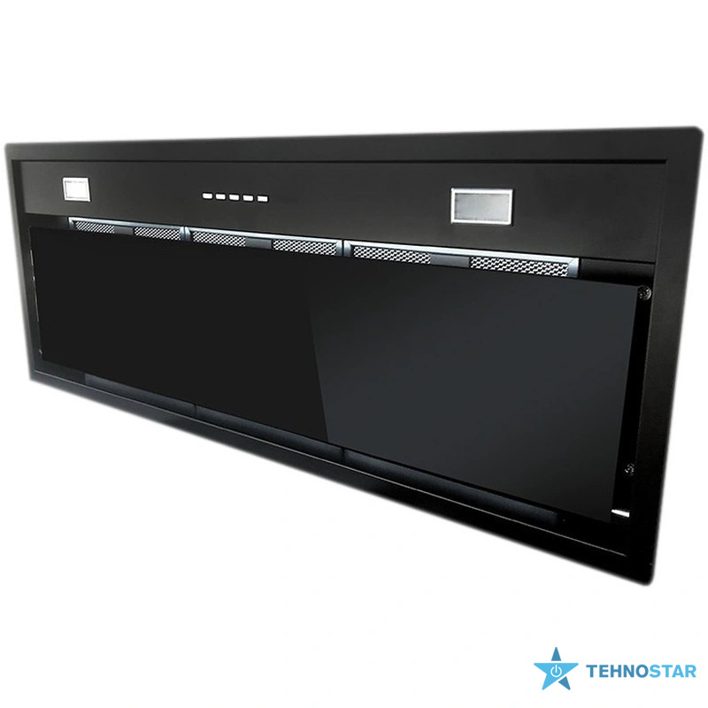 Ця модель має периметральну зону всмоктування — повітря “збирається” не тільки через центральні отвори, але й по краям панелі. Це дозволяє приховати металевий фільтр знизу та зберігати ідеально рівну передню поверхню. Таке рішення не лише естетичне, але й практичне: запахи та пари захоплюються з боків, що підвищує ефективність очищення повітря.