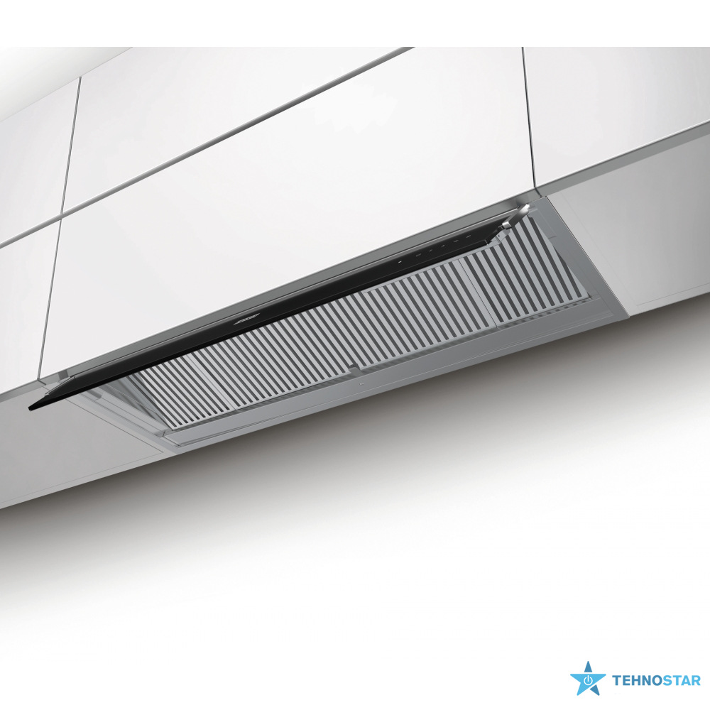 Дизайнерський стиль моделі акцентує увагу на простоті та елегантності. Лаконічні лінії та рівні пропорції роблять витяжку не лише технічним елементом, а й частиною інтер’єрної композиції. Вона виглядає стримано, але водночас додає простору відчуття легкості та преміальності.