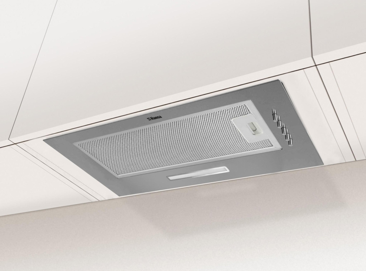 Hansa OMP6211IH – компактна вбудована витяжка шириною 55 см у сріблястому кольорі з турбіною потужністю до 400 м³/год. Оснащена 3 швидкісними режимами, світлодіодним освітленням (4 Вт) і алюмінієвим жировим фільтром. Працює з вугільними фільтрами FWP 19 (2 шт.), забезпечуючи ефективне очищення повітря.