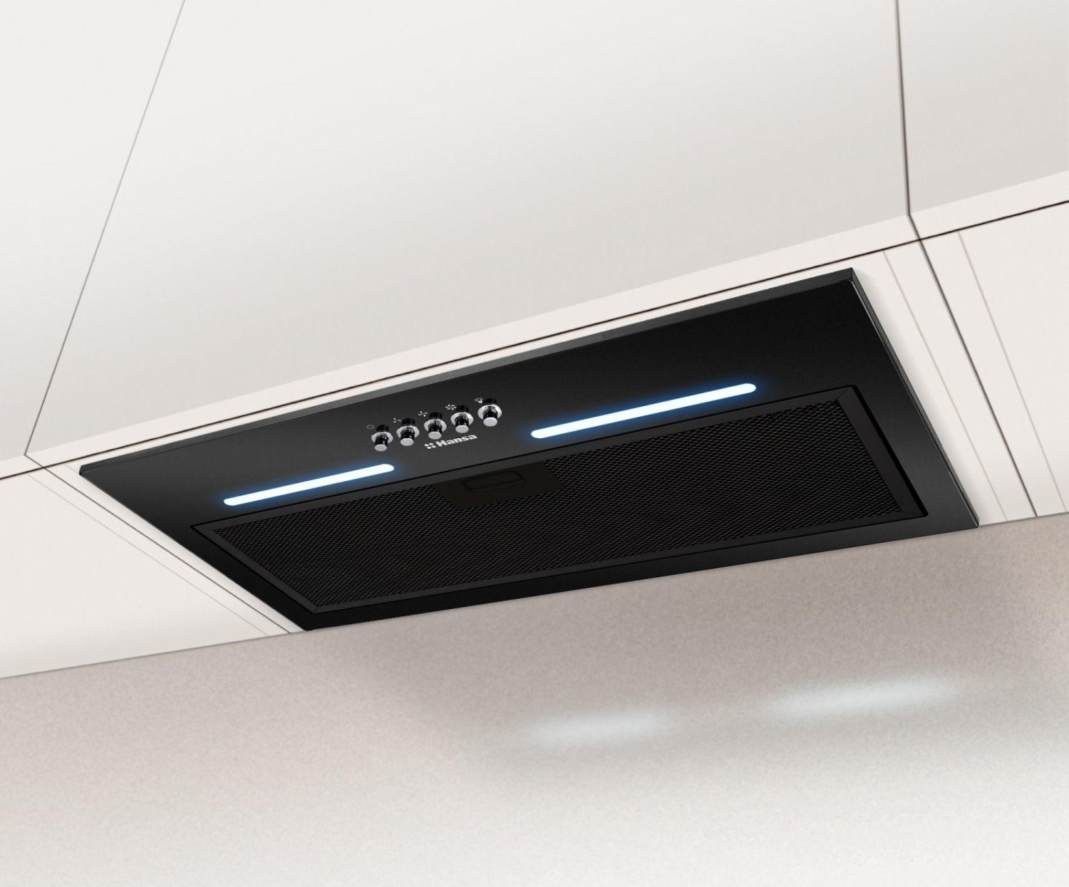 Hansa OMP6251BGH — це надійна картриджна витяжка з можливістю роботи у двох режимах: відведення повітря або рециркуляція. Корпус поєднує сталеву основу з чорним склом, створюючи стриманий сучасний вигляд. Модель має продуктивність 400 м³/год і оснащена трьома рівнями швидкості для різних типів готування. Світлодіодна стрічка з нейтральним холодним відтінком забезпечує рівномірне освітлення поверхні. Завдяки алюмінієвому жировому фільтру та можливості встановлення вугільних фільтрів KF17154 повітря залишається чистим навіть під час інтенсивного приготування.