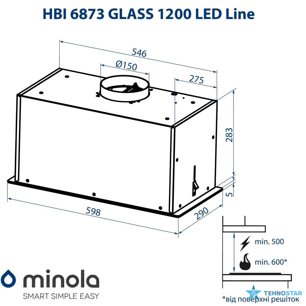 Витяжка Minola HBI 6873 BL GLASS 1200 LED Line — це повновбудована кухонна витяжка, яка поєднує в собі сучасний дизайн та високу ефективність. Її стильний чорний корпус із загартованого скла додає елегантності будь-якому інтер'єру кухні.