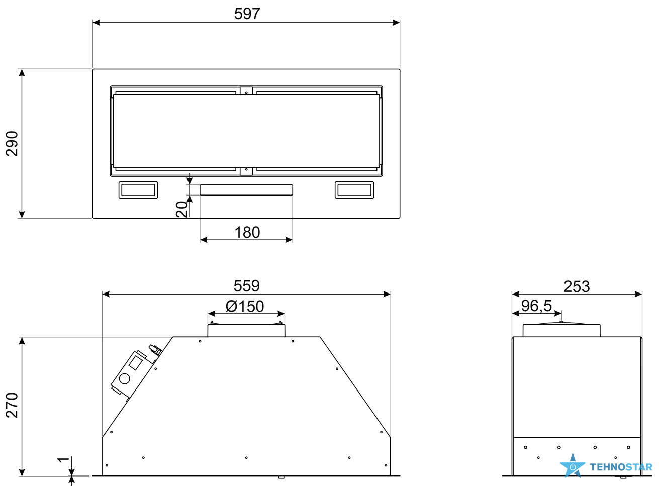 Керування витяжкою здійснюється за допомогою сенсорної панелі, що забезпечує зручність та інтуїтивно зрозуміле управління. Вбудоване LED-освітлення потужністю 2x1 Вт створює яскраве та рівномірне освітлення робочої поверхні.
