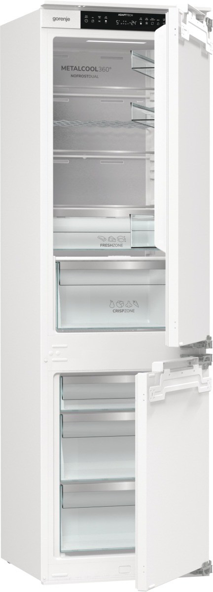 Gorenje NRKI517E82WF поєднує інтегровану конструкцію, адаптивне охолодження та гнучку організацію внутрішнього простору. Модель орієнтована на стабільне зберігання продуктів і раціональне використання енергії.