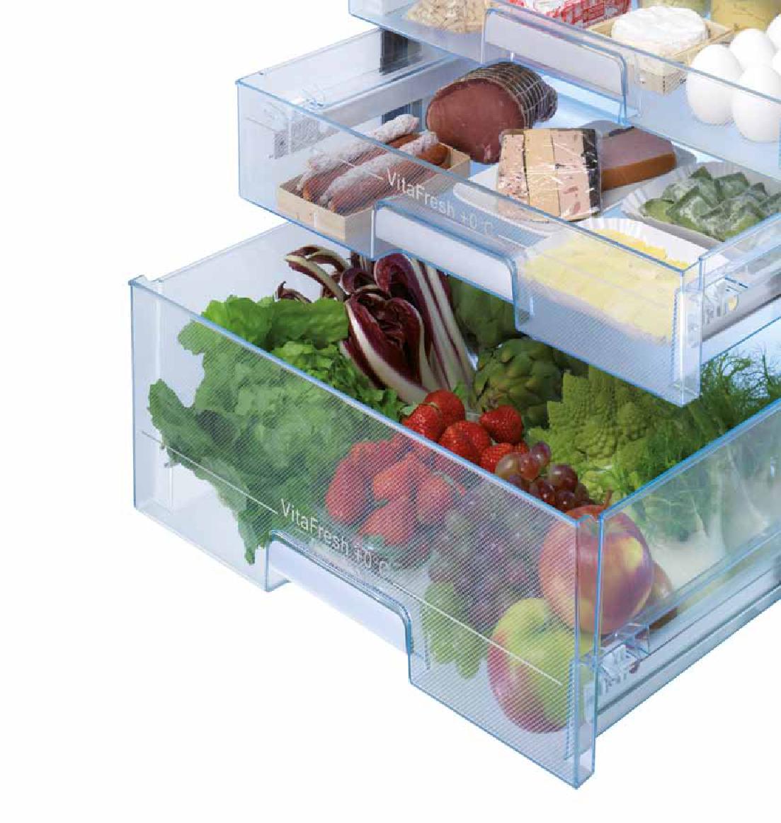 • Компанія Bosch пропонує низку передових технологій, спрямованих на збереження свіжості продуктів і комфорт користування: VitaFresh Plus — підтримує ідеальний мікроклімат для овочів, фруктів, риби та м’яса, продовжуючи їх свіжість у 2 рази довше.Приклад товару: