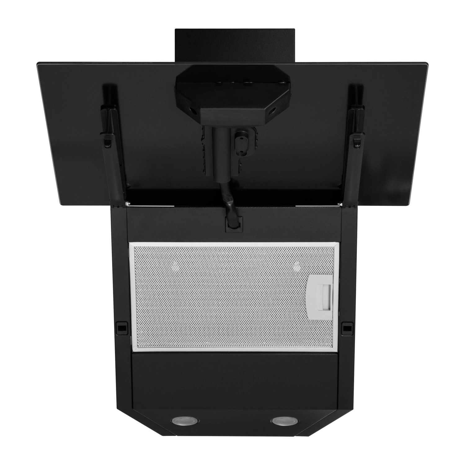 Тришаровий алюмінієвий фільтр затримує жир, запобігаючи осіданню на кухонних поверхнях. Заслінка перешкоджає зворотному потоку повітря. Рівень шуму під час роботи не перевищує 63 дБ. Дві LED-лампи потужністю 1 Вт кожна забезпечують рівномірне освітлення варильної поверхні. Металеві елементи корпусу зносостійкі, тому витримують перепади температур.