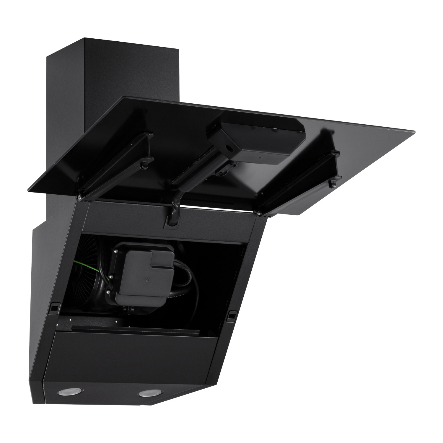 Двигун потужністю 90 Вт забезпечує продуктивність до 450 м³/год (за вільного відведення повітря). Керування витяжкою просте та зрозуміле – кнопкова панель дає змогу швидко вибрати одну із трьох швидкостей і вмикати або вимикати освітлення.