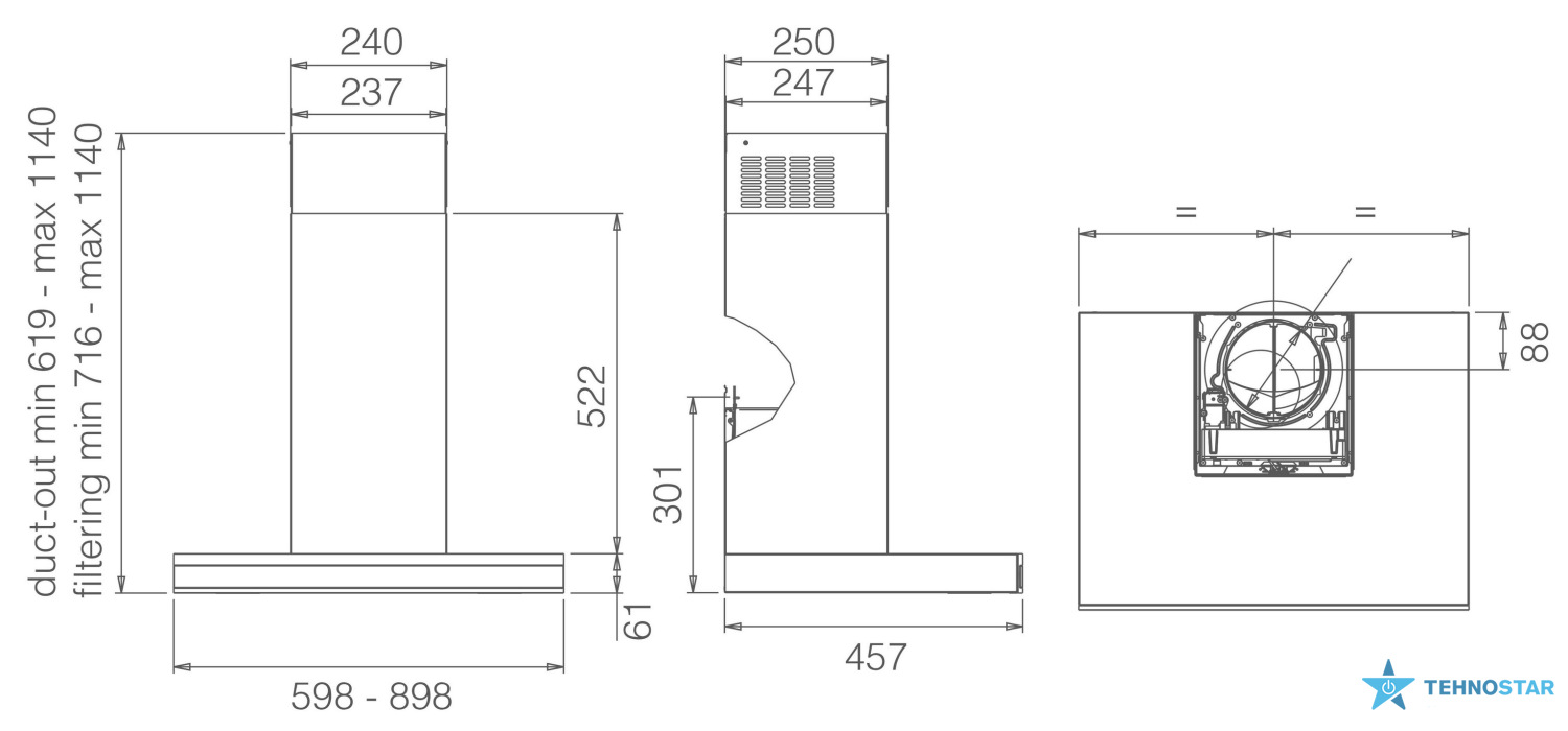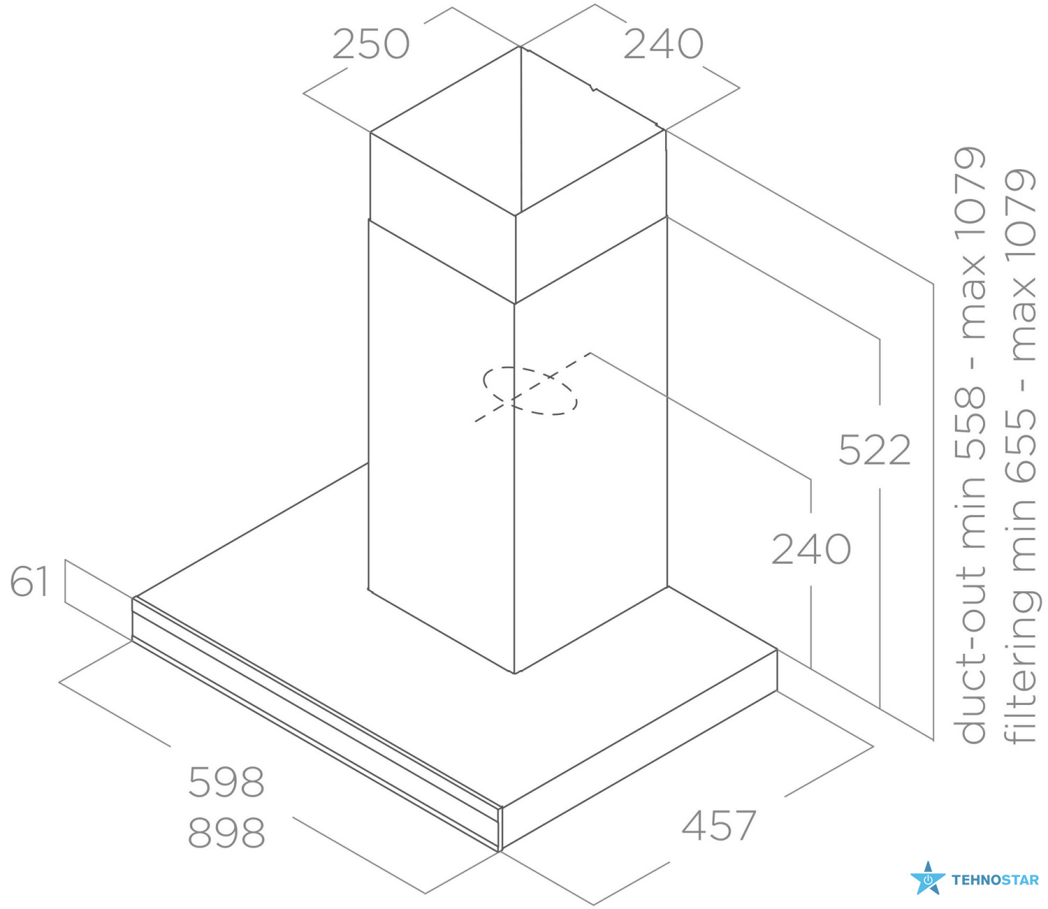 З максимальною продуктивністю 1500 м³/год, витяжка ефективно очищує повітря від запахів, пари та диму, що робить її ідеальним вибором для кухонь середнього та великого розміру. Режим роботи — відведення повітря, що забезпечує швидке та ефективне очищення.