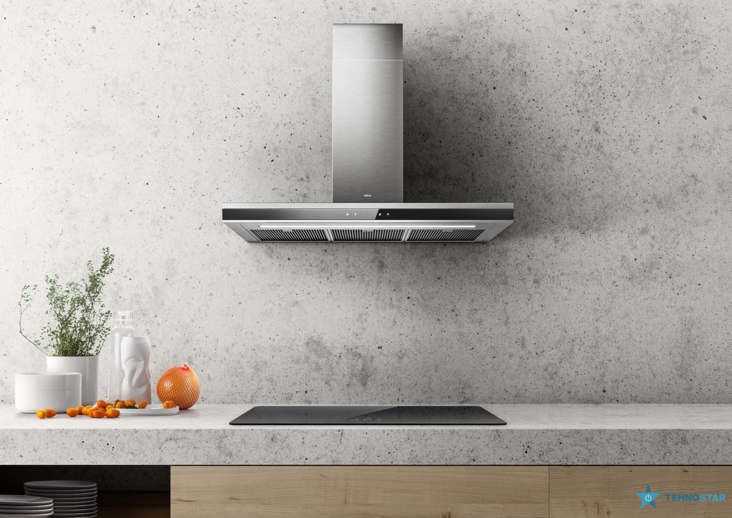 Управління витяжкою здійснюється за допомогою сенсорної панелі з трьома швидкостями, що дозволяє легко налаштувати потужність витяжки відповідно до потреб.