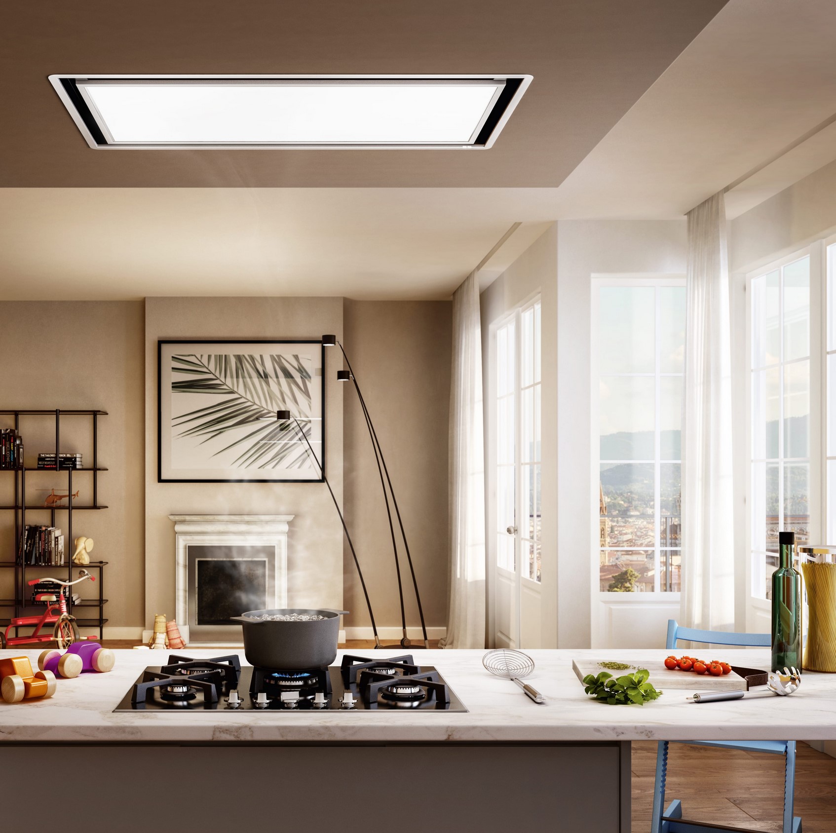 Elica SKYDOME H16 A/100 — це острівна витяжка з виразним, але стриманим дизайном, яка перетворює робочу зону на стильний центр кухні. Її плавні обриси та світле покриття створюють відчуття легкості, тому прилад виглядає як природне продовження інтер’єру, а не як громіздка техніка. Така витяжка підходить для просторих планувань, де важлива гармонія між естетикою та функціональністю.