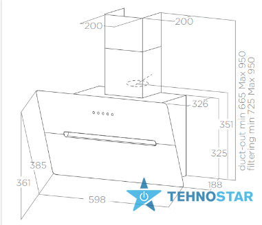 Дизайн моделі продуманий для монтажу на стіну: нахилена панель оптимізує захоплення пари в робочій зоні, а контрастні деталі підкреслюють сучасний характер приладу. Візуально витяжка виглядає як завершений елемент інтер’єру, що легко поєднується з різними стилями — від мінімалізму до індустріального шику.