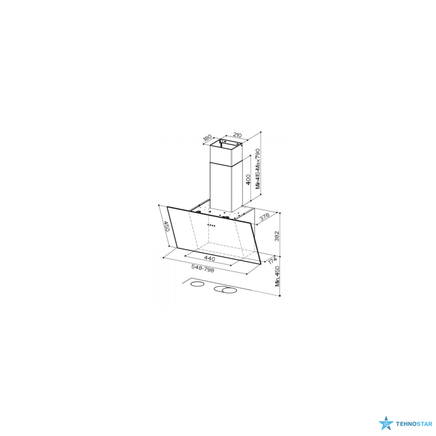 Витяжка шириною 55 см, що робить її компактною та ідеально підходить для кухонь з обмеженим простором або для малих розмірів кухонь. Вона має форму, що надає стильний і сучасний вигляд кухні користувача. Також має чорний колір, який надає елегантності та контрасту дизайну кухні. Витяжка оснащена вбудованим LED-освітленням, яке надає достатньо світла на робочій поверхні кухні. Витяжка використовує потужний вентилятор та ефективну систему фільтрації для ефективного видалення шкідливих речовин, диму та запахів з кухні, забезпечуючи свіже повітря у приміщенні.