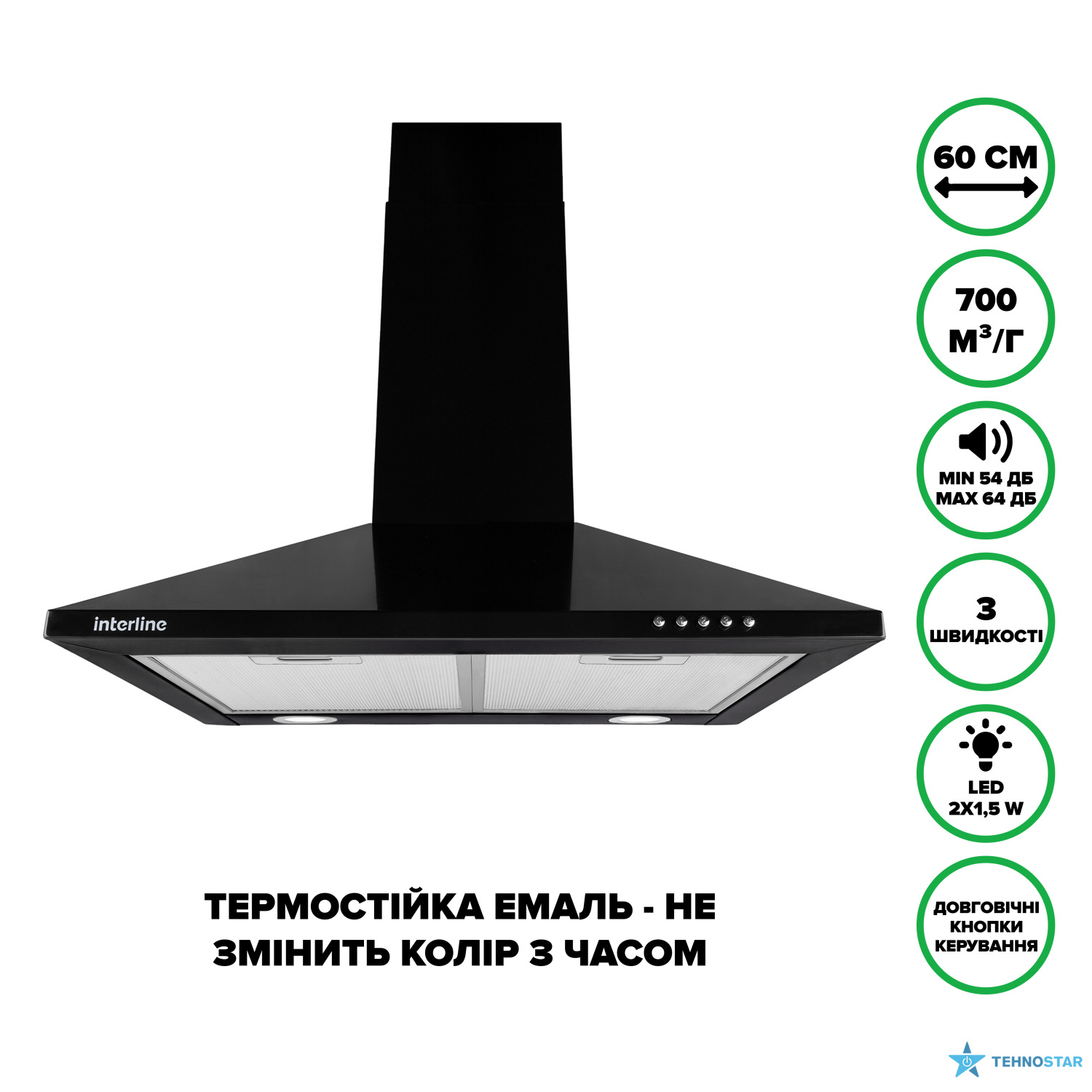 Interline SET BL A/60 PB/2/T — декоративна настінна витяжка у виразному темному виконанні, що поєднує класичний купольний силует із сучасними акцентами. Її округла форма і продумана фактура роблять прилад помітним декоративним елементом над плитою, який додає кухні характеру та відчуття завершеності інтер’єру.