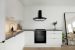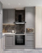 Дизайн моделі орієнтований на комфорт візуального сприйняття: купол створює м’яку, обволікаючу лінію над робочою зоною, а темні металеві деталі підкреслюють індустріальну або сучасну стилістику кухні. Така витяжка працює як акцентний предмет — вона не лише виконує технічну функцію, а й формує настрій простору.