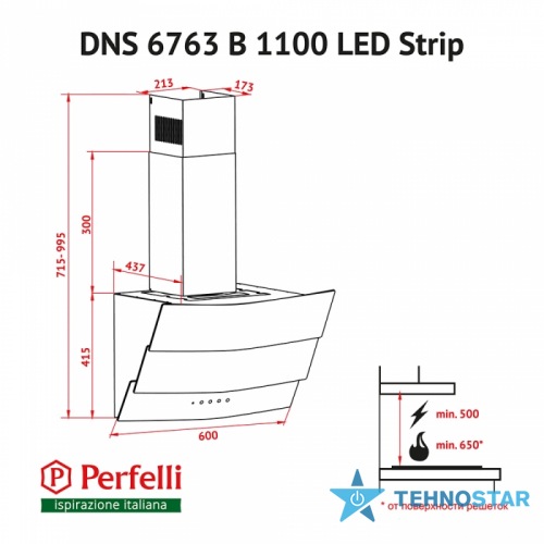 Современный итальянский стиль прекрасно выражен в вытяжке Perfelli DNS 6363 B 750 BL LED Strip. Сочетание металлического корпуса и закаленного стекла объединен в дружном тандеме, что видоизменит стиль вашей кухни в один миг. Максимальная мощность вытяжки со свободным выходом воздуха составляет 750 м3/ч. Панель управления располагается в центральной передней части вытяжки. Она состоит из четырех сенсорных кнопок, которые отвечают за переключения скоростей вентилятора и включение света. Освещение вытяжки состоит из одной продолговатой LED лампы мощностью 3 Вт. Вытяжка оснащена практичным алюминиевым фильтром, который можно просто и легко вымыть в теплой мыльной воде. Вытяжка может работать в режиме отвода и рециркуляции воздуха*.