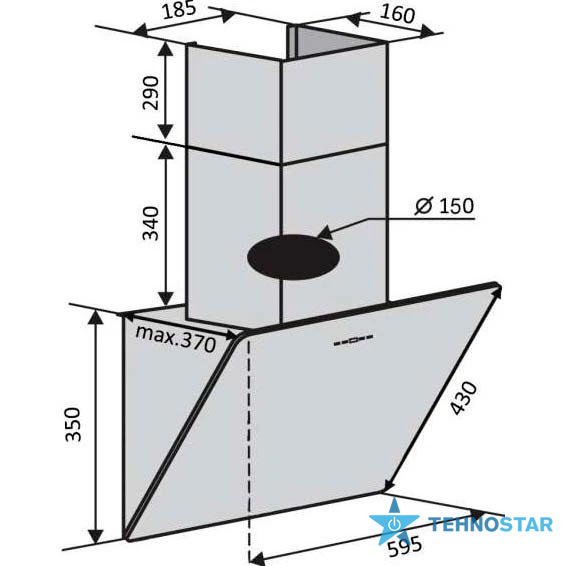 Діаметр повітропроводу 150 мм, розміщений зверху корпусу..