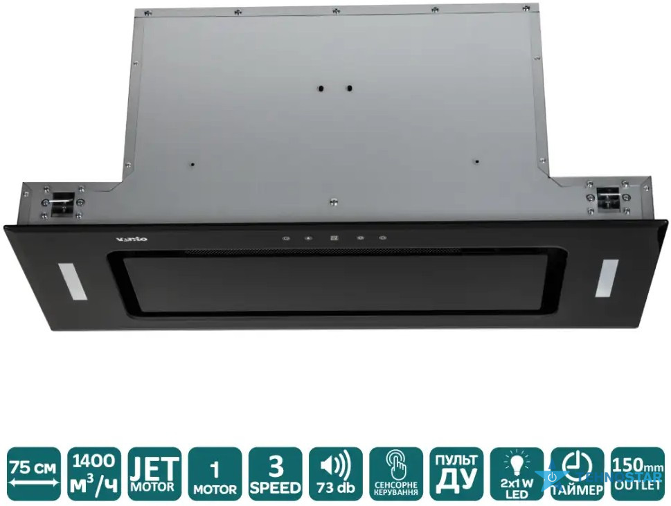 За роботу на повній потужності голос буде невеликим — рівень шуму до 73 дБ, що є прийнятним для потужних витяжок.
