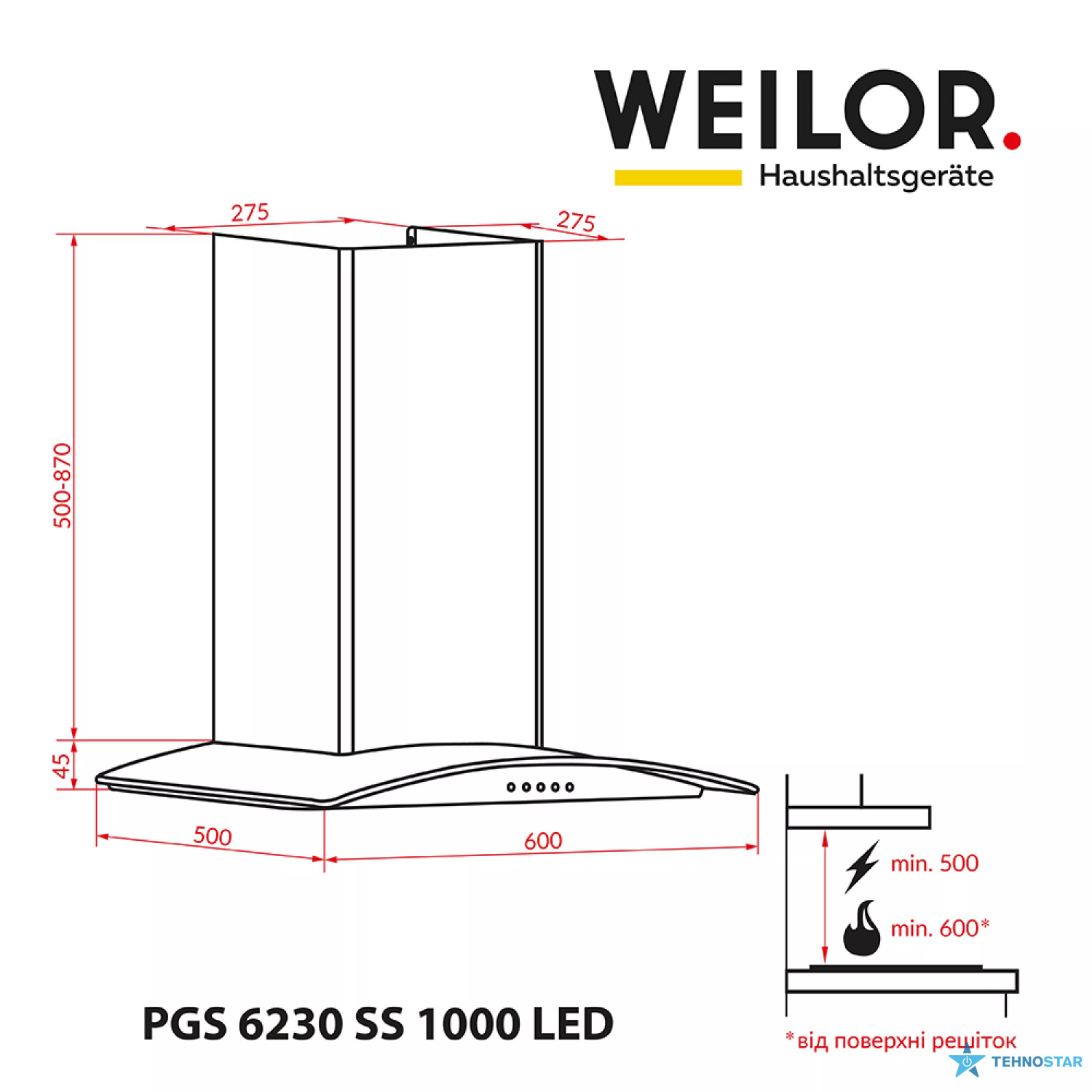Витяжка WEILOR PGS 6230 SS 1000 LED — це сучасне декоративне рішення для кухні, яке поєднує стильний дизайн та високу ефективність роботи. Її корпус із нержавіючої сталі додає інтер’єру елегантності та гармонії, а продумана конструкція забезпечує якісне очищення повітря навіть під час активного приготування. Завдяки сучасному LED‑освітленню модель створює комфортну атмосферу та робить процес готування більш приємним.