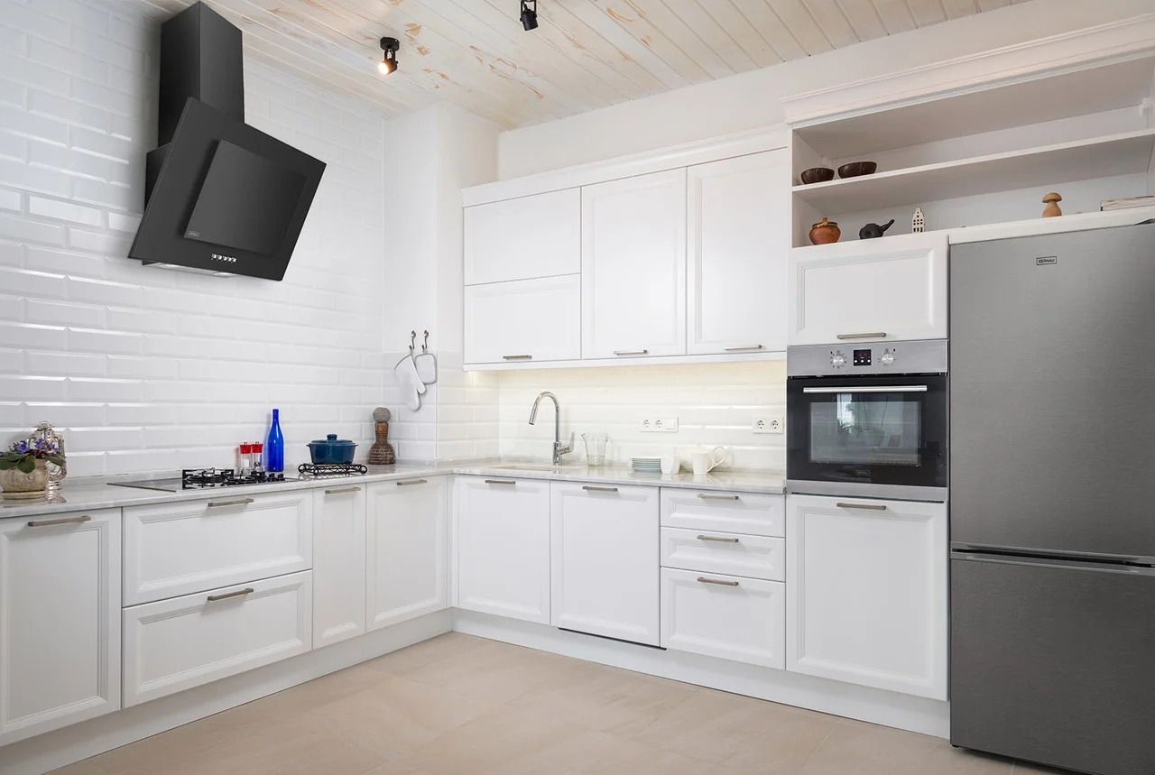Подвесные модели подойдут для кухни небольшой площади. У них простой дизайн и они не занимают много места, так как их ширина 50-60 см. Встраиваемая или телескопическая техника монтируется в шкафчик кухонного гарнитура. Их мощность не уступает другим моделям, и они не испортят дизайн кухни.
