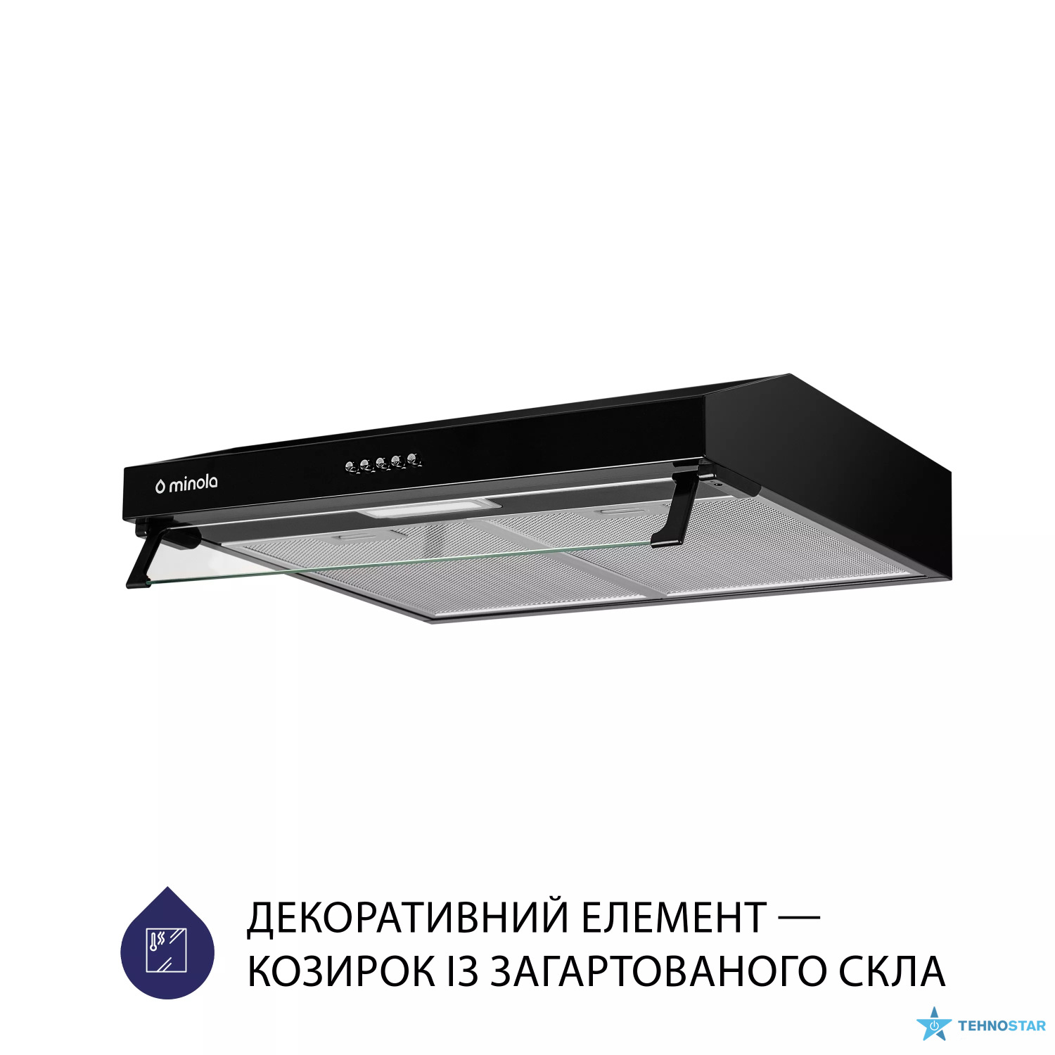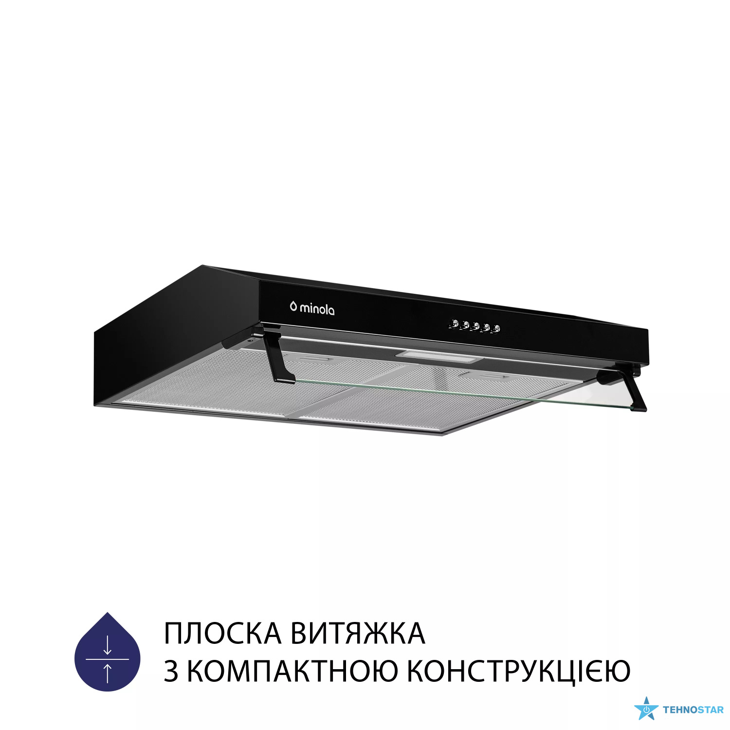 Minola HPL 514 BL — це витончена плоска витяжка чорного кольору, яка органічно впишеться в будь-який кухонний інтер’єр. Її акуратний корпус дозволяє легко інтегрувати прилад під навісною шафою, зберігаючи чистоту ліній та акуратність простору.