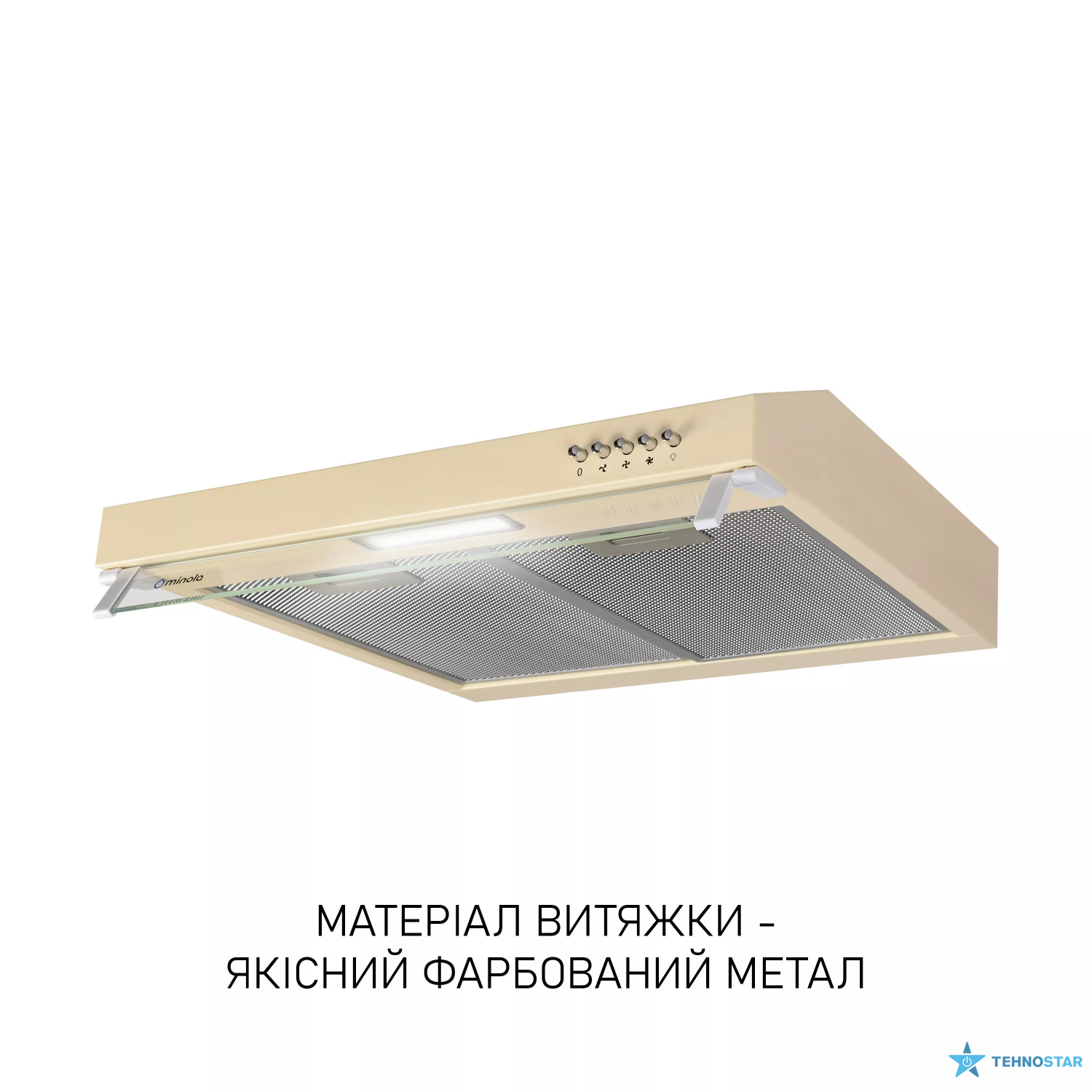 Витяжка Minola HPL 522 BG — це стильне плоске рішення для кухні, яке поєднує сучасний дизайн та практичність. Її корпус у ніжному бежевому кольорі додає інтер’єру тепла й гармонії, легко вписуючись як у класичні, так і в сучасні кухонні простори. Завдяки компактній конструкції модель органічно інтегрується у меблі, ефективно усуваючи запахи та випари під час приготування страв. Вбудоване LED‑освітлення робить робочу поверхню більш комфортною та зручною.
