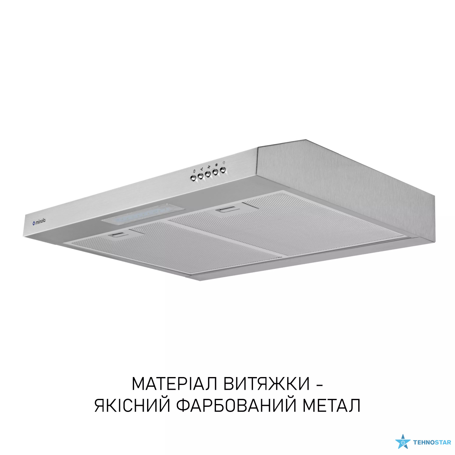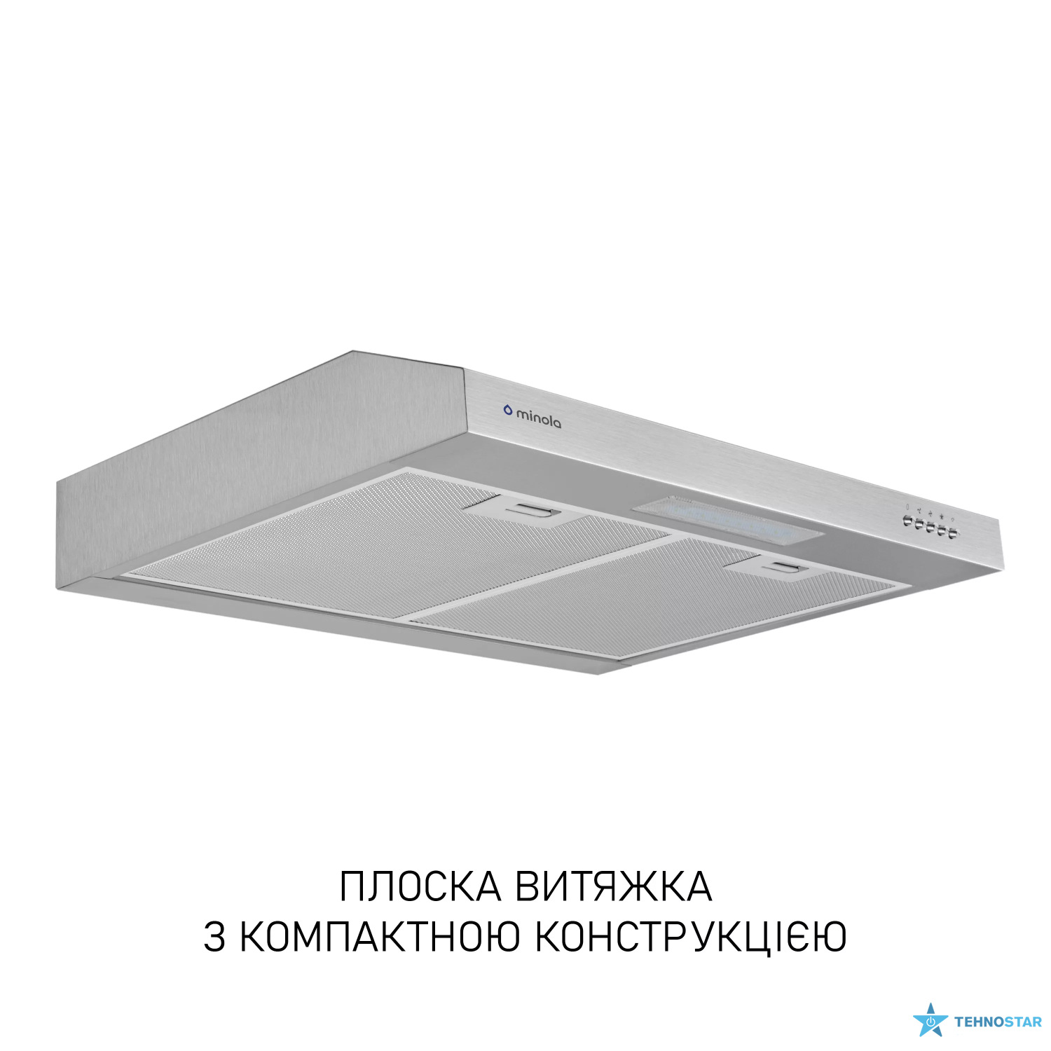 Minola HPL 612 I — це витончена плоска витяжка, виконана з нержавіючої сталі, що поєднує стильний вигляд, продуману ергономіку та універсальність. Її акуратний корпус дозволяє легко інтегрувати прилад під навісною кухонною шафою, зберігаючи чистоту форм і простору.