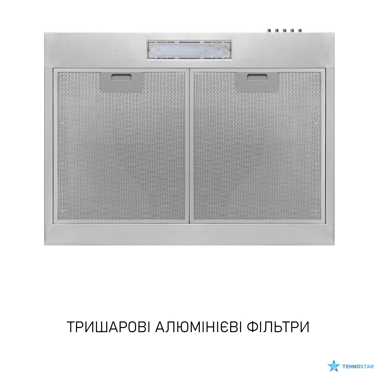 Алюмінієвий жирозбиральний фільтр затримує жир та інші забруднення, захищаючи внутрішні компоненти витяжки від пошкоджень та забезпечуючи довговічність приладу.