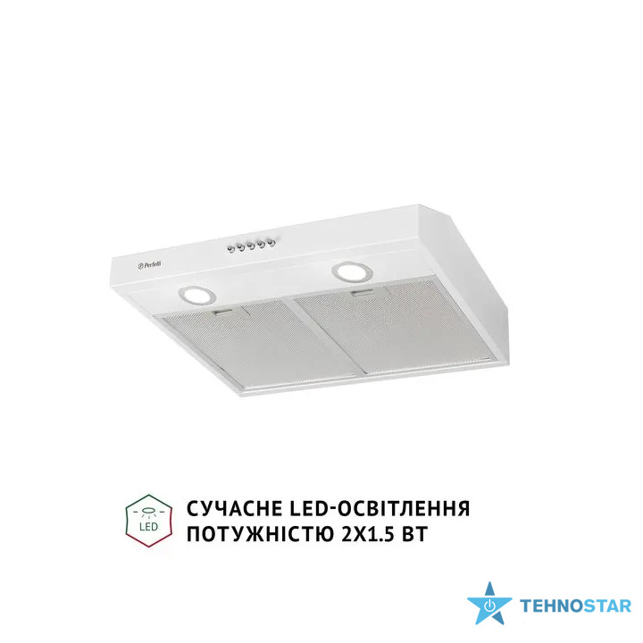 Perfelli PL 5002 W LED — це компактна та елегантна витяжка білого кольору, продумано створена для сучасного кухонного простору. Її витончений корпус дозволяє незаметно інтегрувати прилад під навісною шафою, зберігаючи чистоту ліній та акуратність інтер'єру.