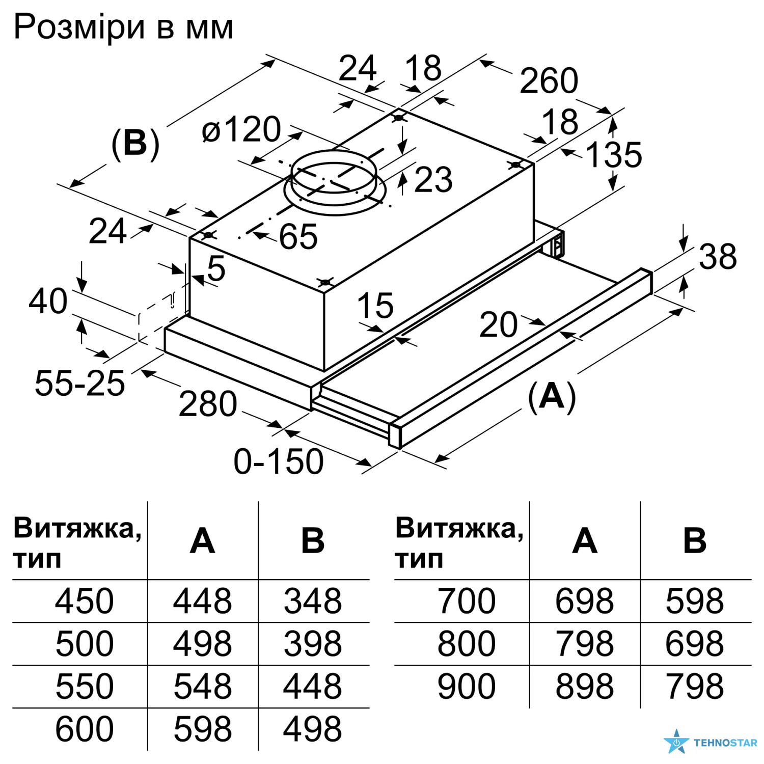Bosch DFT63CA51T — це витончена телескопічна витяжка, яка ховається в шафі, щоб не порушувати чисті лінії кухонного гарнітуру, і миттєво з’являється в робочому режимі, коли починається приготування. Її стриманий металевий фасад і плавні механічні рухи додають відчуття якості та порядку, а м’яке підсвічування робочої зони створює комфортну атмосферу для будь‑яких кулінарних експериментів.