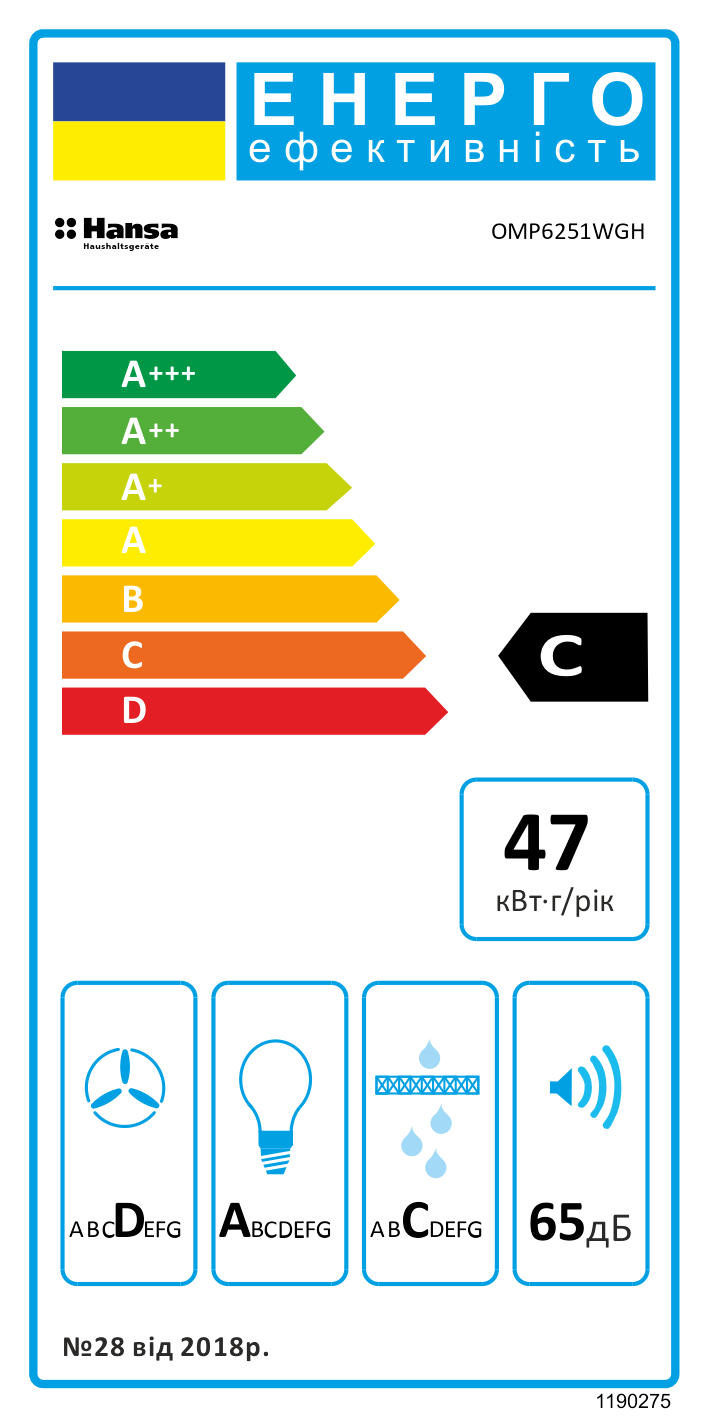 Витяжка Hansa OMP6251WGH поєднує компактні розміри, надійну фільтрацію та ефективне освітлення в одному пристрої. Модель працює тихо й економно, забезпечуючи комфортне середовище на кухні без зайвих витрат енергії.