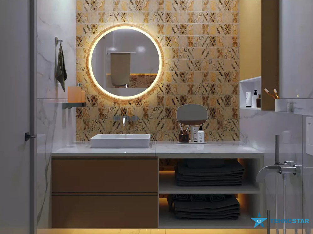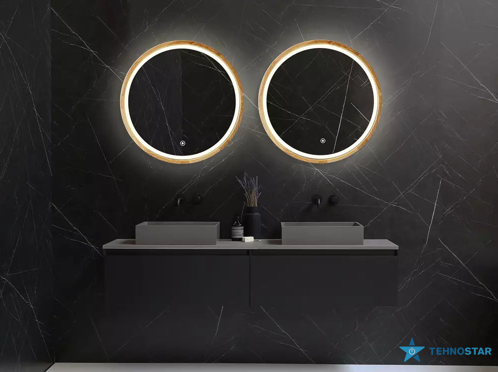 У цій моделі застосовано LED підсвітку з кількома режимами освітлення та сенсорну кнопку‑диммер; у описах продавців прямо вказані режими аурна і фронтальна та сенсорне керування для регулювання яскравості.